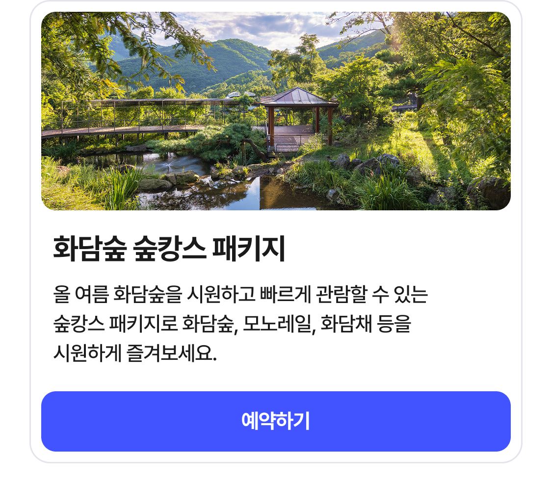 화담숲은 100% 사전 예약제로 운영됩니다. 현장 발권은 불가능하므로 미리 온라인으로 예약해야 합니다.