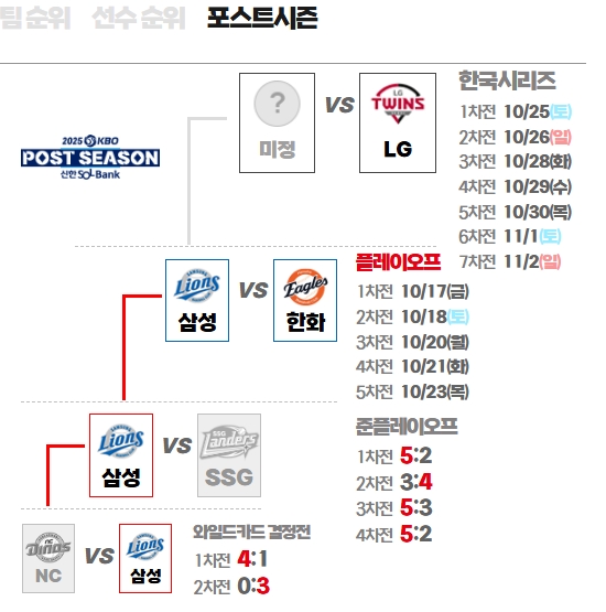 2025 플레이오프 일정 한눈에 보기